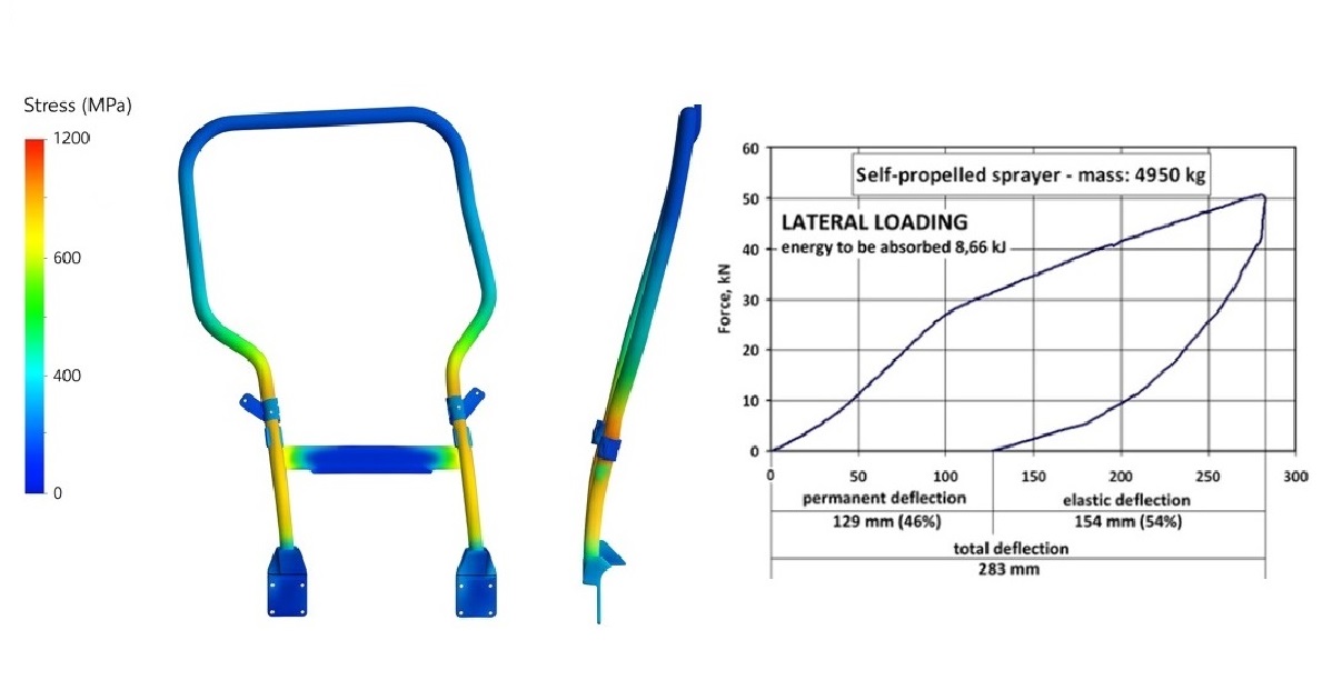 Lateral & horizontal tractor ROPS loading and follow energy absorption criteria.
