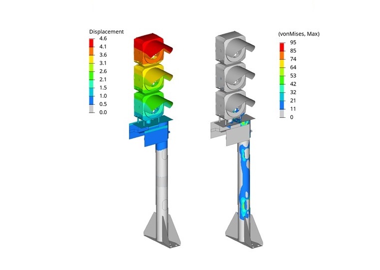 Signal mast analysed for deflection & stress levels as per railway equipment design standard.